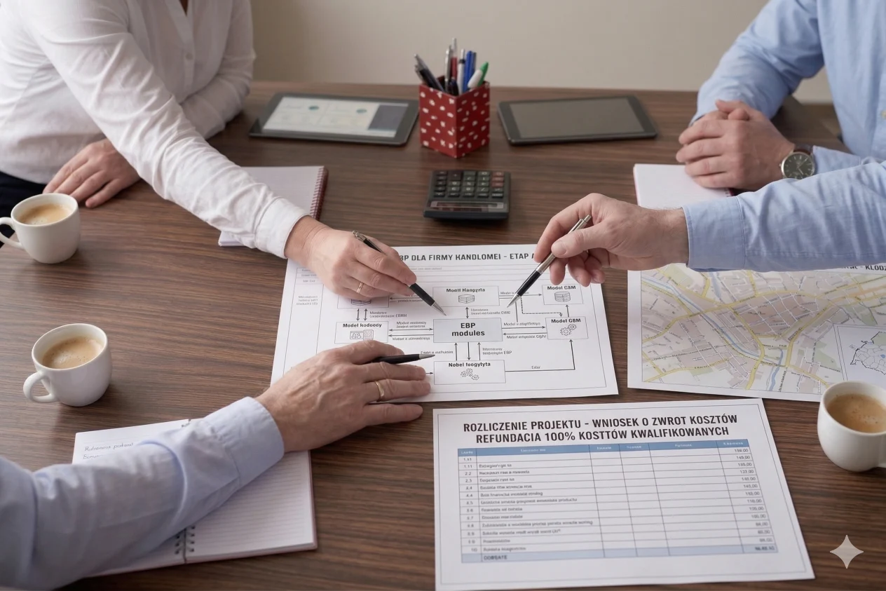 Dla dynamicznie rozwijającej się firmy handlowej pozyskaliśmy fundusze na zaawansowany system ERP. Projekt objął pełną opiekę nad dokumentacją aplikacyjną, co pozwoliło na 100% refundację kosztów kwalifikowanych.